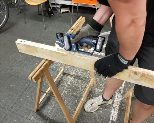 Nachdem die letzten Kunden gingen und die Werkstatt geschlossen wurde, fingen wir an, die am Sonntag vom Sperrmuell organisierten Kanthoelzer zu hobeln.